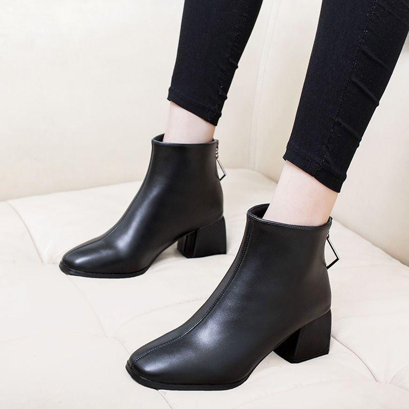 Fashion Elegant with Medium Heels Warm Woman Short Shoes Waterproof Leather Ankle Boots for Women Autumn Winter Y2k Booties On Promotion