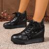 Fashion 2025 New Women Wedge Platform Sneakers Rubber Leather High Heels Lace Up Shoes Height Increasing White Thick Bottom