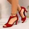 Fashion Elegant Woman Heeled Shoes 2025 Cover Heel Casual Women's Sandals Fashion Zip Office and Career Summer Plus Size Peep Toe Sandal