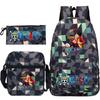 Cartoon Printed Teen Backpack Men's and Women's Student School Bag Three-piece Combination