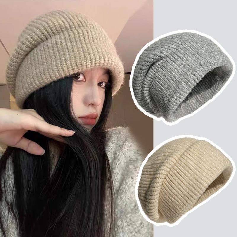 Big Head Circumference Wool Hat Women's Winter Warm Ear Protection Loose Face Small Korean Knitted Pile Cold Hat
