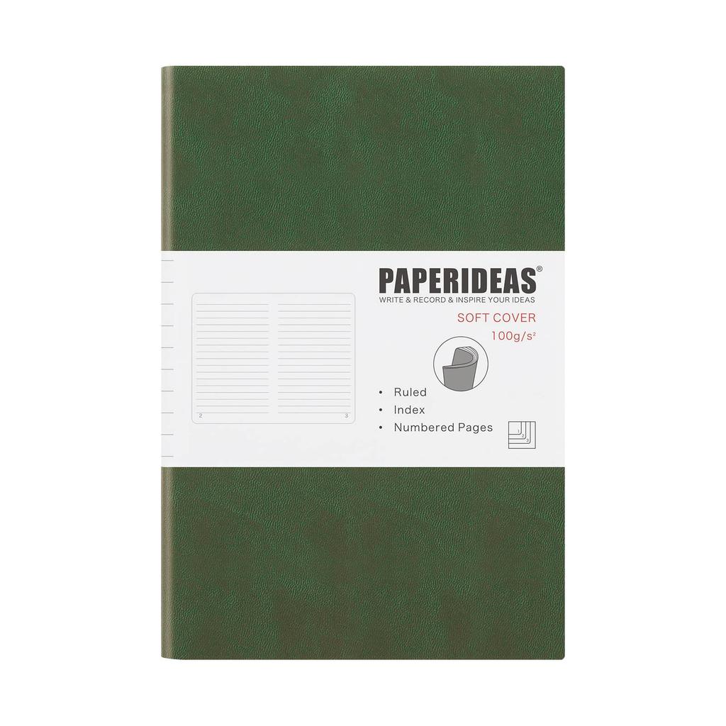 PAPERIDEAS Soft Cover Olive Notebook, A5, (Horizontal Lines, Green)