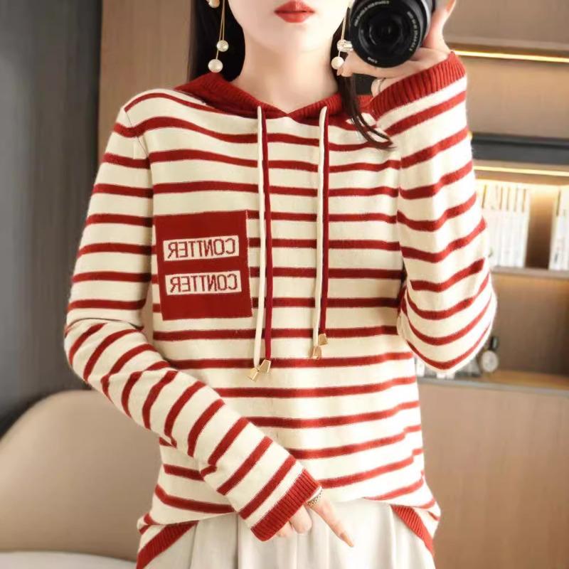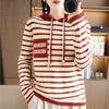Hooded Striped Knitted Sweater Women's Autumn and Winter New Loose Casual Color Matching Sweater Wearing Striped Sweater
