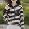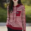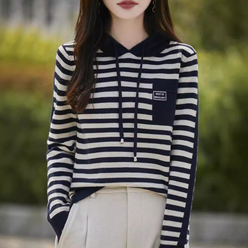 Striped Hooded Pullover Bottom Knitted Sweater Women's Jacket Sweater Loose Casual Fashion Reducing Top Hoodie Sweater