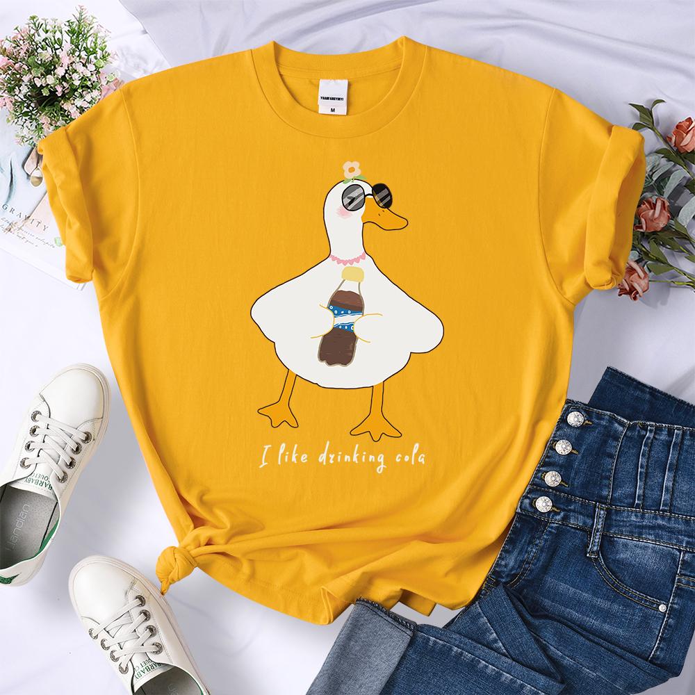 Sunglasses Drink Duck Design Women Tee Shirts Summer Comfortable T-Shirt Casual Crewneck Clothes Hip Hop Soft Woman Short Sleeve