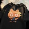 Summer Japanese Anime Anime Cat Short-sleeved Cotton Breathable Printed T-shirt Loose Versatile Harajuku Cute Men Student