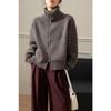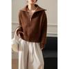 Autumn and Winter New Large Lapel Double Zipper Lamb Wool Knitted Cardigan Women's Lazy Style Versatile Sweater Jacket Women