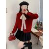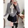 Gentle Wind Lace Lace-up Crew Neck Knitted Cardigan Top Women's Spring and Autumn New Loose Sweet Age-reducing Sweater Jacket