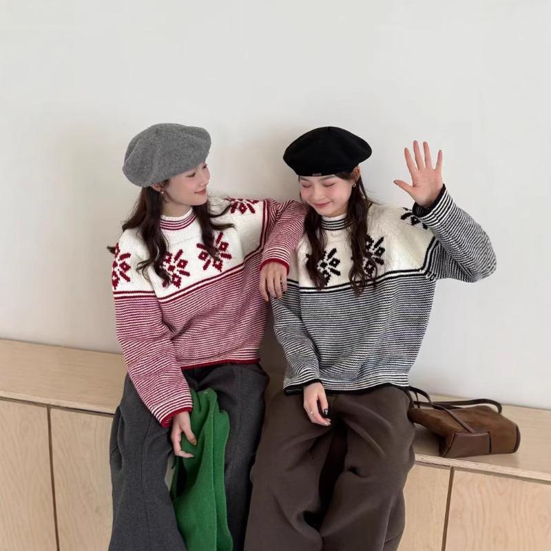Vintage Fair Island Jacquard Knitted Pullover for Women's Autumn and Winter New Thickened Christmas Striped Loose Knitted Sweater for Women