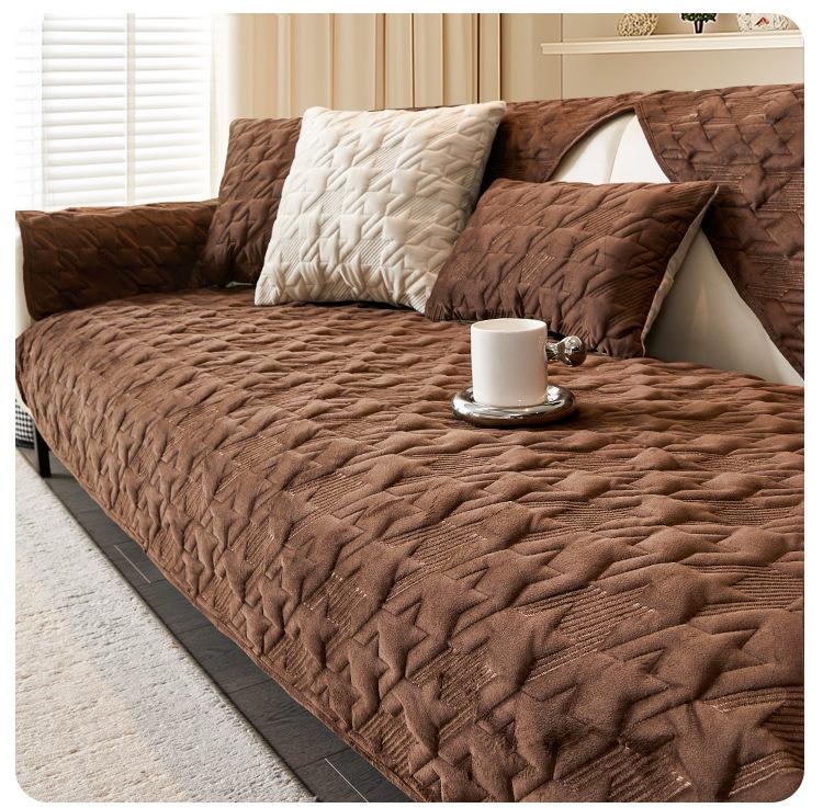 Sofa Seat Slipcovers Solid Color Plush Jacquard Housse Canape Dangle Sofa Protector Home Decor Fleece Sofa Cover for Winter Warm