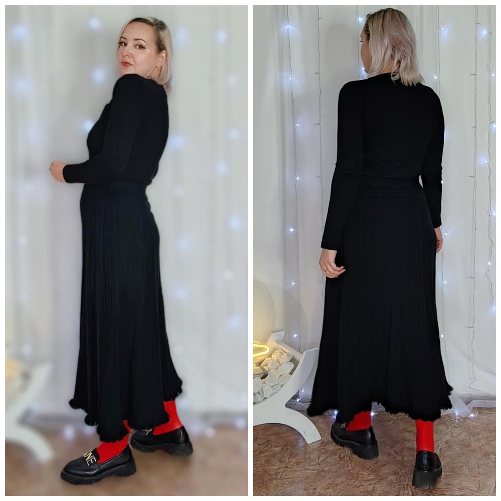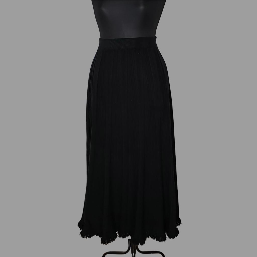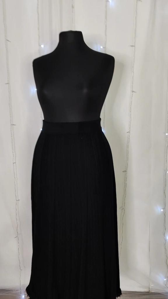 Korean Fashion Autumn Winter Women Maxi Long Skirt High Waist Beige Black Knitting Pleated Skirt Knitted Tassel Elegant Feminine Skirts