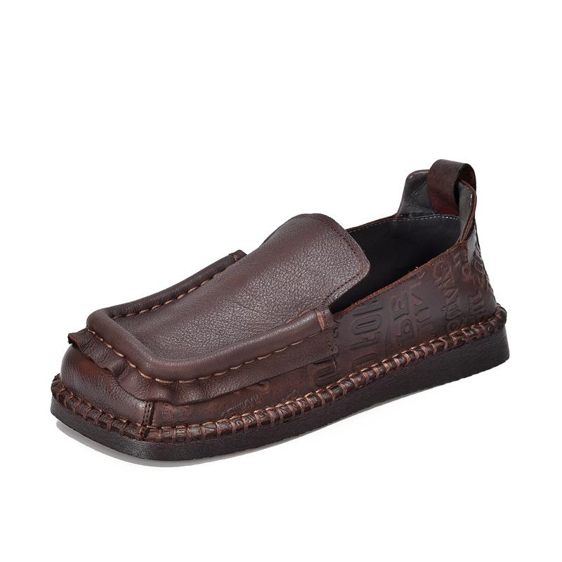 Fashion 2.5CM Square Toe Flats Shoes For Women Loafers Casual Flat Heel Soft Soles Luxury Genuine Leather Elegant Platform Lazy Shoes