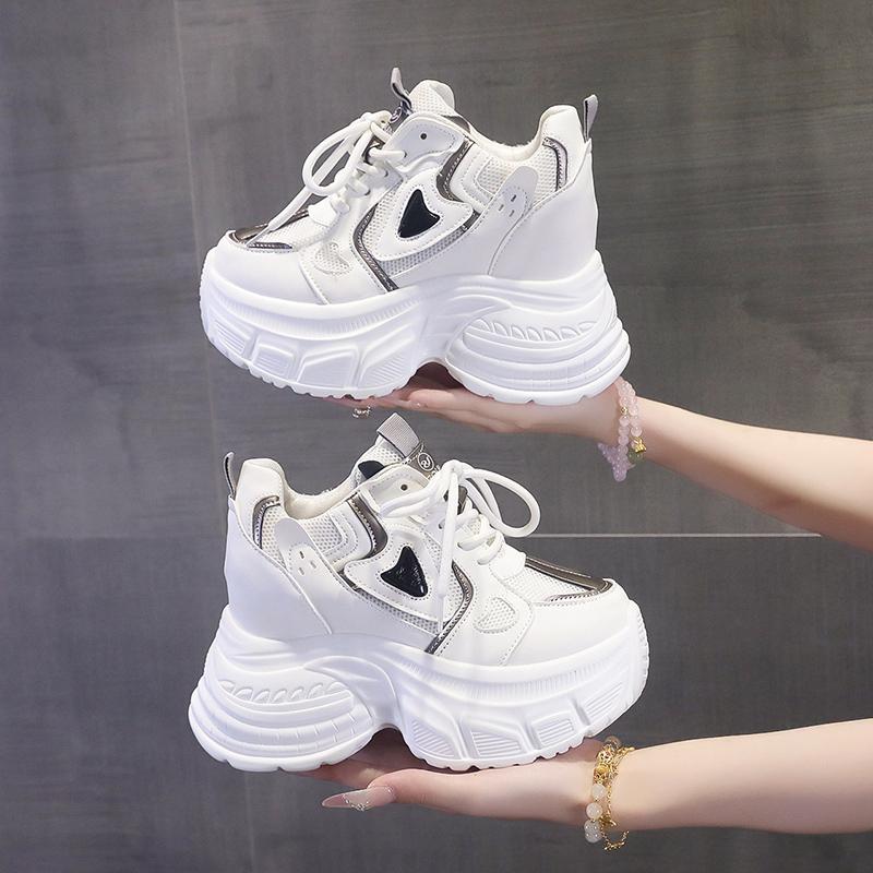 Fashion 10CM Women Casual Leather Shoes New Autumn Breathable Mesh Chunky Sneakers Street Height Increased Shoes Thick Platform Sneakers