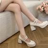 Fashion Women Chunky Heels Mary Jane Shoes Princess Spring New Fashion Platform Comfortable Black Soft Anti-slippery Dress Leather Shoes