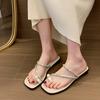 Fashion New Fashion Pearl Buckle Flip Flops Women Flat Heel Crystal Band Slippers Sexy Ladies Clip Toe Slides Shoes Rhinestone Sandals