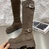 Fashion High Boots for Women Flats Suede Winter Designer Shoes Fashion Knee High Boots 2025 New Dress Brand Goth Mujer Chelsea Botas