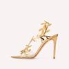 Fashion Star Style Summer Fashion Sequined Patent Leather Leaf Women Sandals Elegant Pointed Toe Stiletto High Heels Prom Dresses Shoes