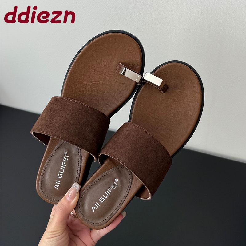 Fashion Round Toe Fashion Metal Women Flats Slippers Flip Flops Summer Beach Slides Female Flats Slippers Sandals Shoes For Ladies