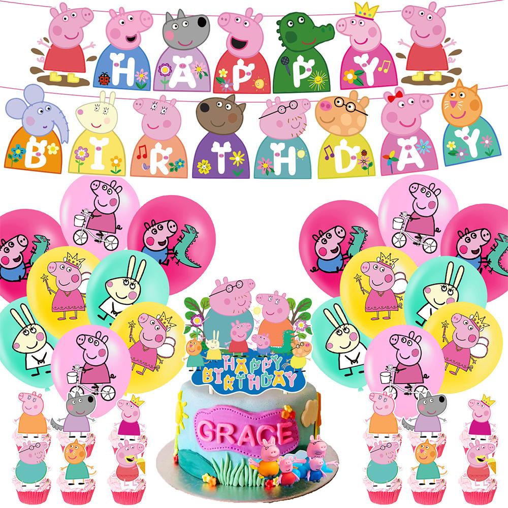 30pcs Peppa Pig Birthday Party Supplies Include Banner Cake Topper Balloon