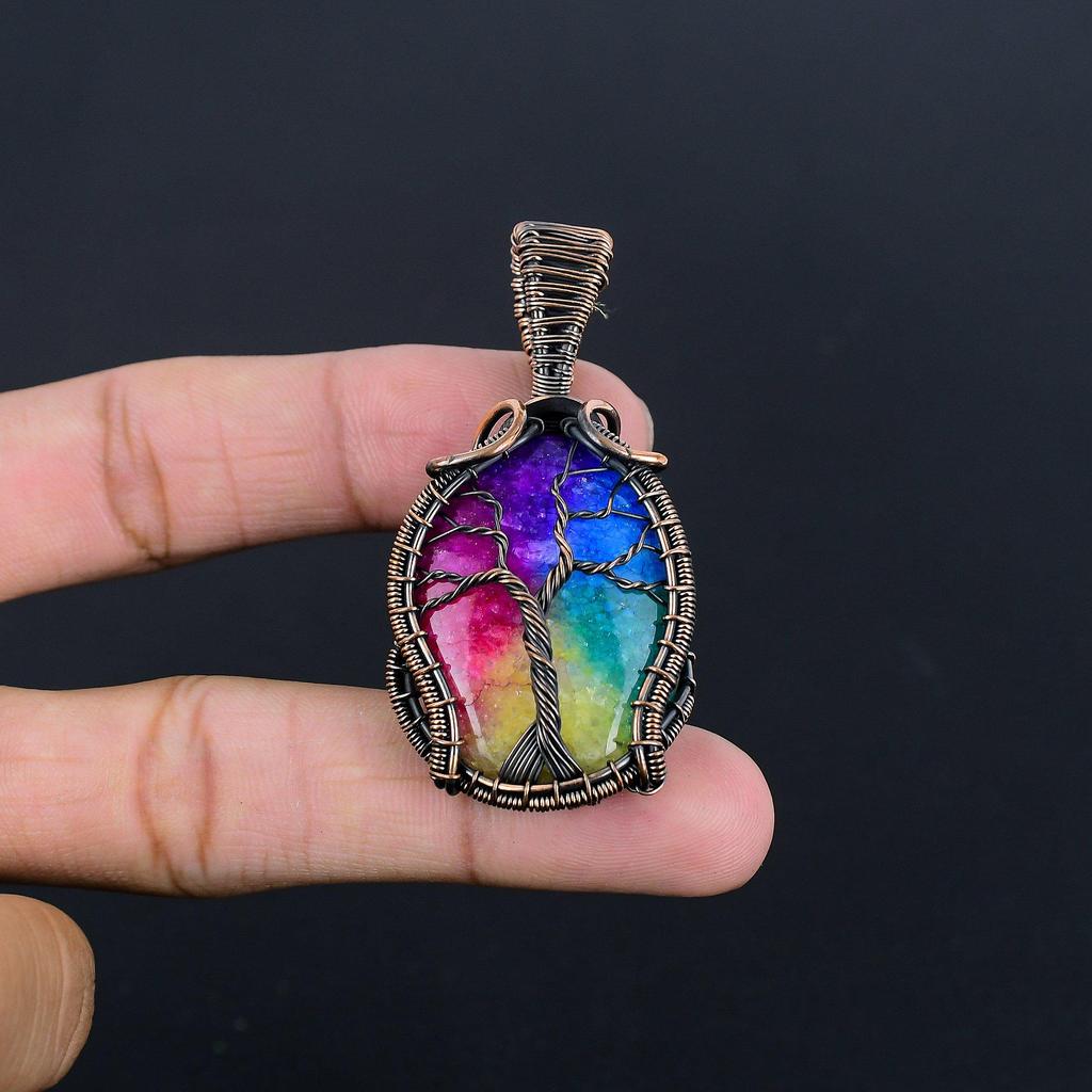 Rainbow Solar Quartz 999 Copper Wire Wrapped Pendant, Handmade Gemstone Pendant Jewelry, Gifts For Wife Brand New Pendant