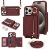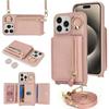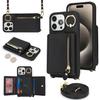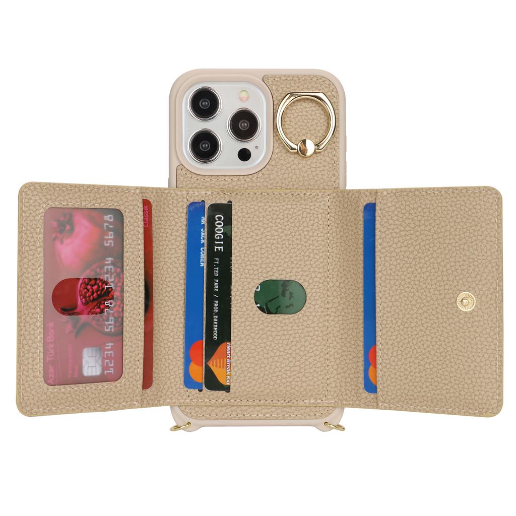 For iPhone 14 Pro Case Card Bag Ring Kickstand PU Leather+TPU Phone Cover with Shoulder Strap