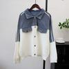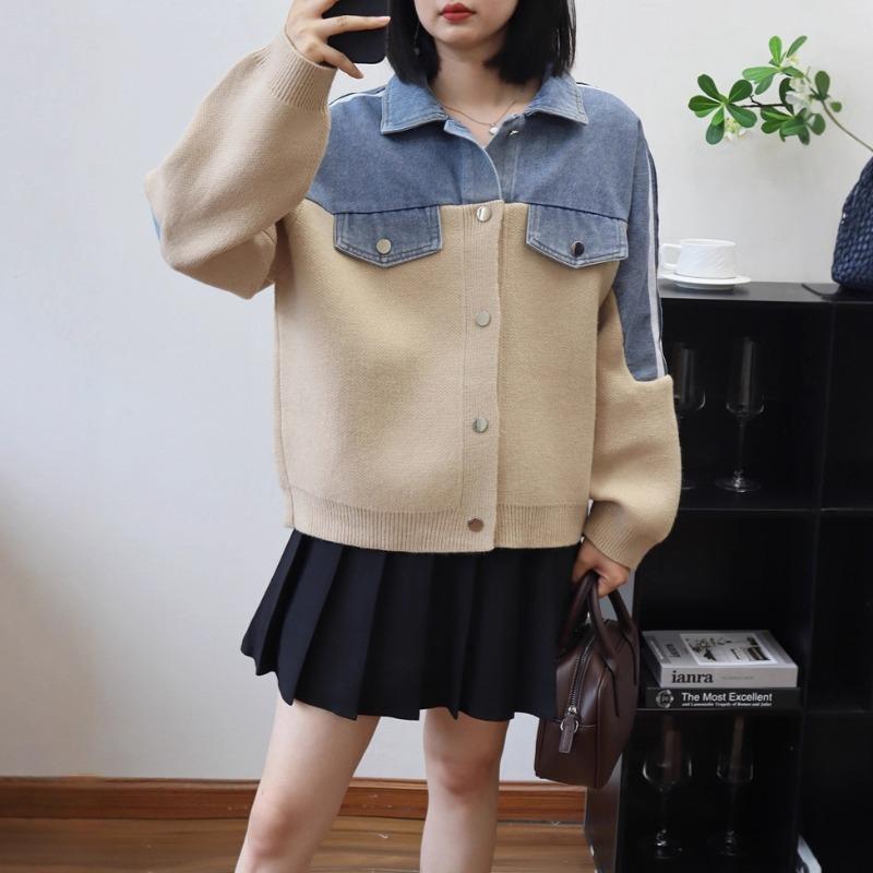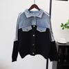 Fashion Denim Splicing Sweater Jacket Autumn and Winter New Design Sense Loose Casual Versatile Knitted Cardigan Women