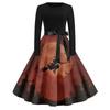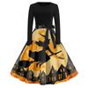 Women's Casual Fashion Round Neck Halloween Printed Vintage Dress