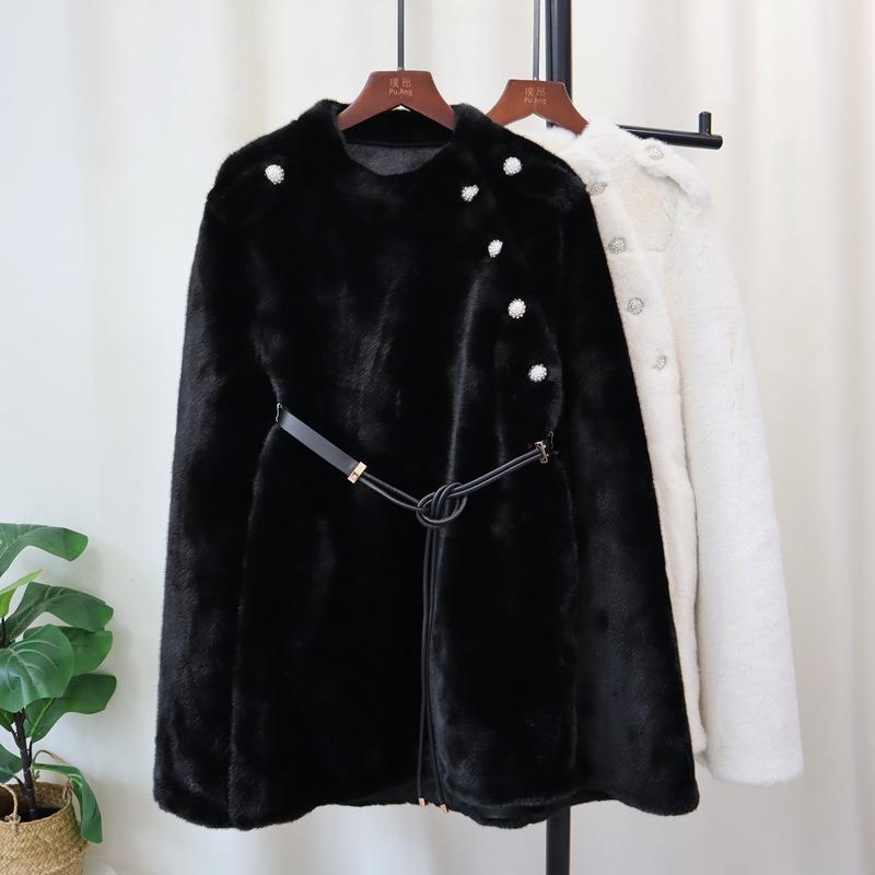 Thickened Fur Integrated Medium and Long Cape Coat Autumn and Winter New Belt Shawl Coat Women