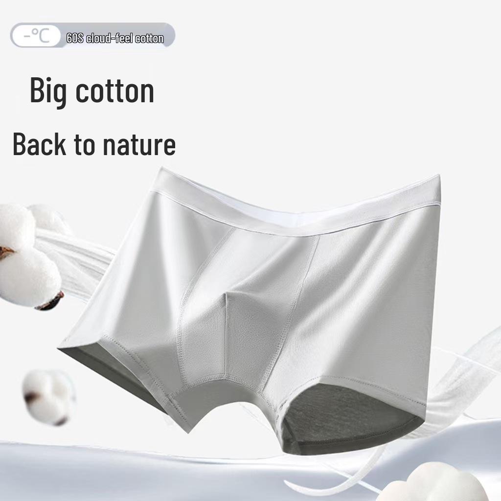 Men's Mid-Rise Seamless Boxer Briefs - 60s Long-Staple Cotton with Graphene Antibacterial Crotch, Breathable & Pure Cotton