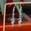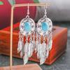 Ethnic Turquoise Love Heart Drop Earrings for Women Bohemian Natural Stone Dangle Earrings Girls Party Birthday Zircon Gifts