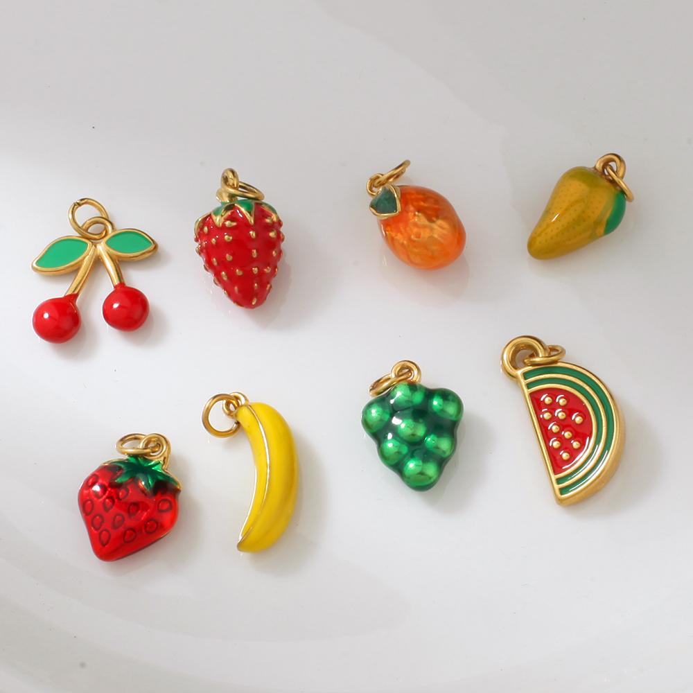 Stainless Steel Women's Stainless Steel Fruit Pendant Strawberry Watermelon Banana Pendants Women Zircon DIY Charms Accessories