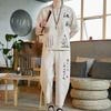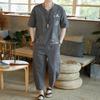 Chinese Style Linen Suit Men's Retro Short-sleeved T-shirt Cotton and Linen Tang Suit Summer Suit Plus Size