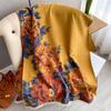 New Red Peony Flower Imitation Cashmere Scarf Women's Short Fringed Gold Shawl Gift Box Cover for Elderly Mothers