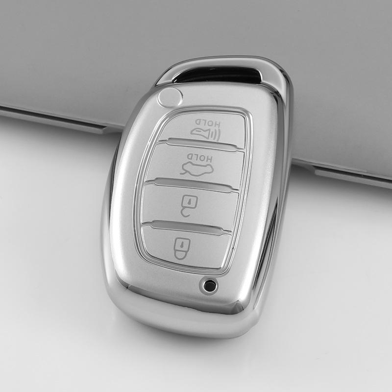 Quicksand Silver 4-Button Key Case for Korean Hyundai Car Interior Protection