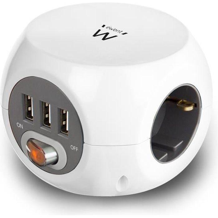Ewent EW3939 Multiprise 1,5 M 3 Sortie(s) CA Intérieur Blanc