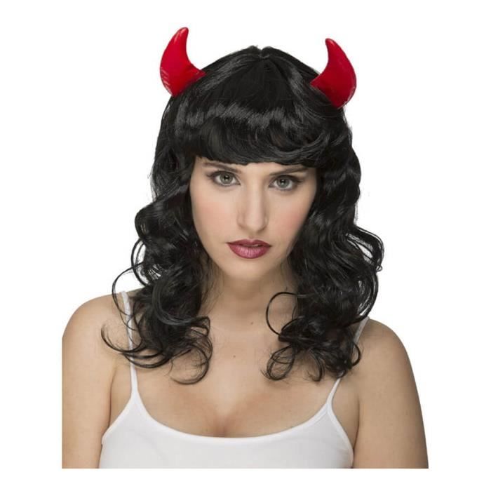 Perruque Noire Bouclée Avec Des Cornes - Disfrazzes - Accessoire De Déguisement Pour Femme