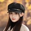 British Style Hat for Women's Autumn and Winter Retro Newspaper Hat Casual Versatile Beret Windproof Face Painter Hat