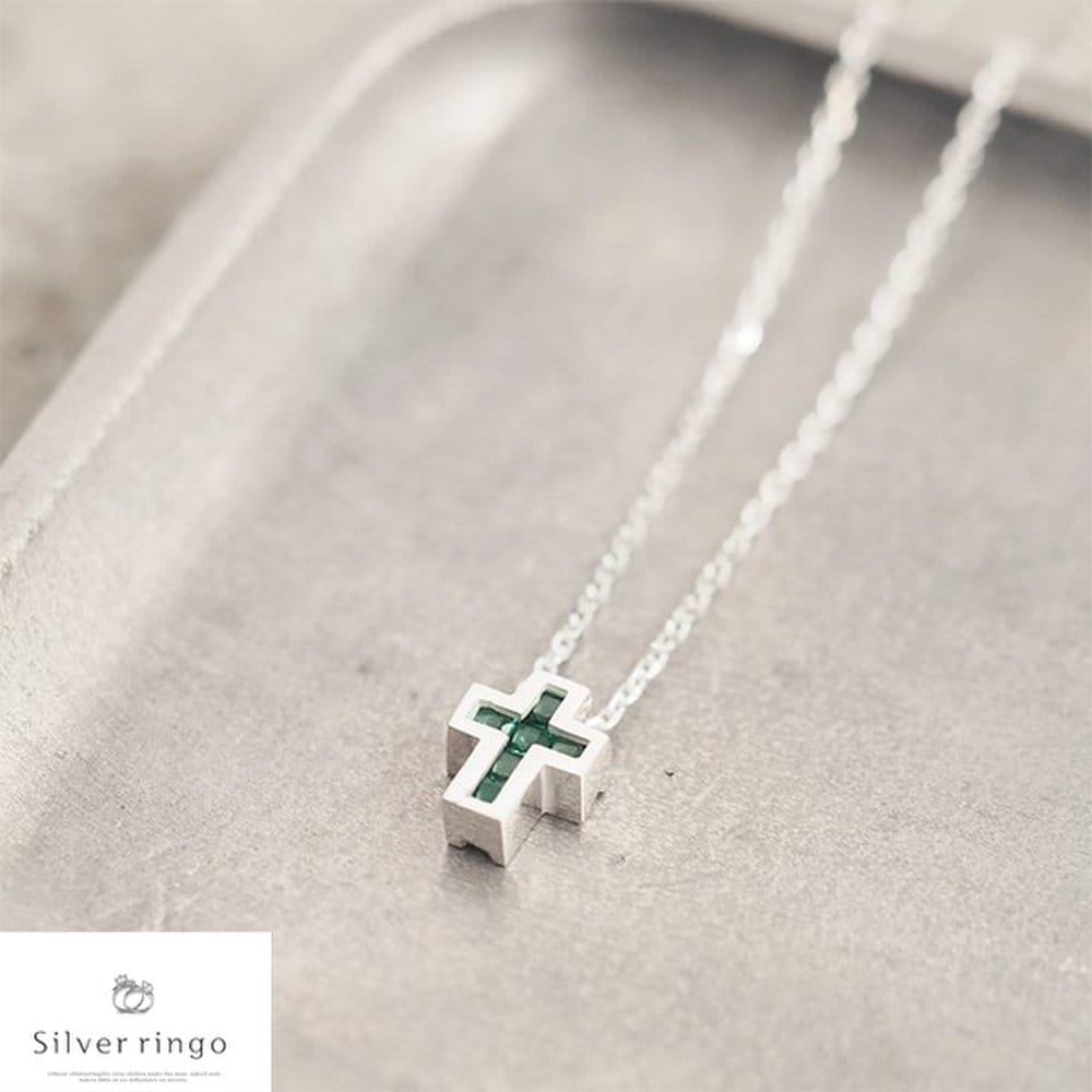 Silver 925 May Birthstone Cross-Shaped Necklace Green Sabrina Cross