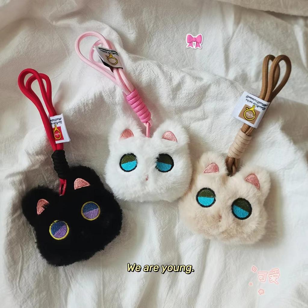 New Squeaky Blue-eyed Cat Keychain Doll Cute Black Leather Cat Bag Pendant Personalized Doll