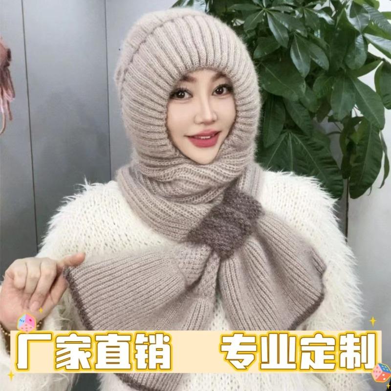 Autumn and Winter Squirrel Velvet Warm Women's Wool Hat Versatile Snow Hat Cold Winter Hat Scarf Integrated Knitted Hat