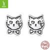 Cute Retro Graffiti Cat Stud Earrings, Pet Cat S925 Sterling Silver Whole Body Stud Earrings Jewelry