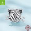 S925 Sterling Silver Cat Wool Beaded Loose Beads, Cute Pet Cat Diy Bead Accessories