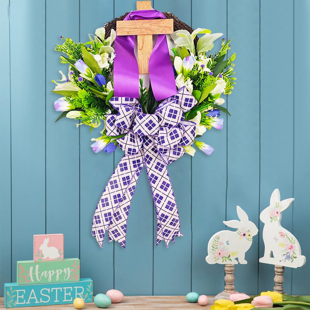 2025 Easter Wreath Cross Door Sign Easter Front Door Wreath for Front Door Decor Religious Easter Decoration