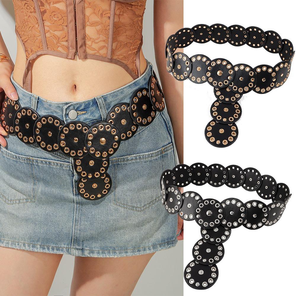 Y2k Disc PU Hollow Belt Zinc Zinc Alloy Concho Waistband Vintage Rivet Wide Belt Gift