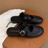 Niche Retro Round Head Flat-bottomed Bag Head Slippers Women's Summer Wear British Brock Cross Strap Lazy Half-tray Sandals