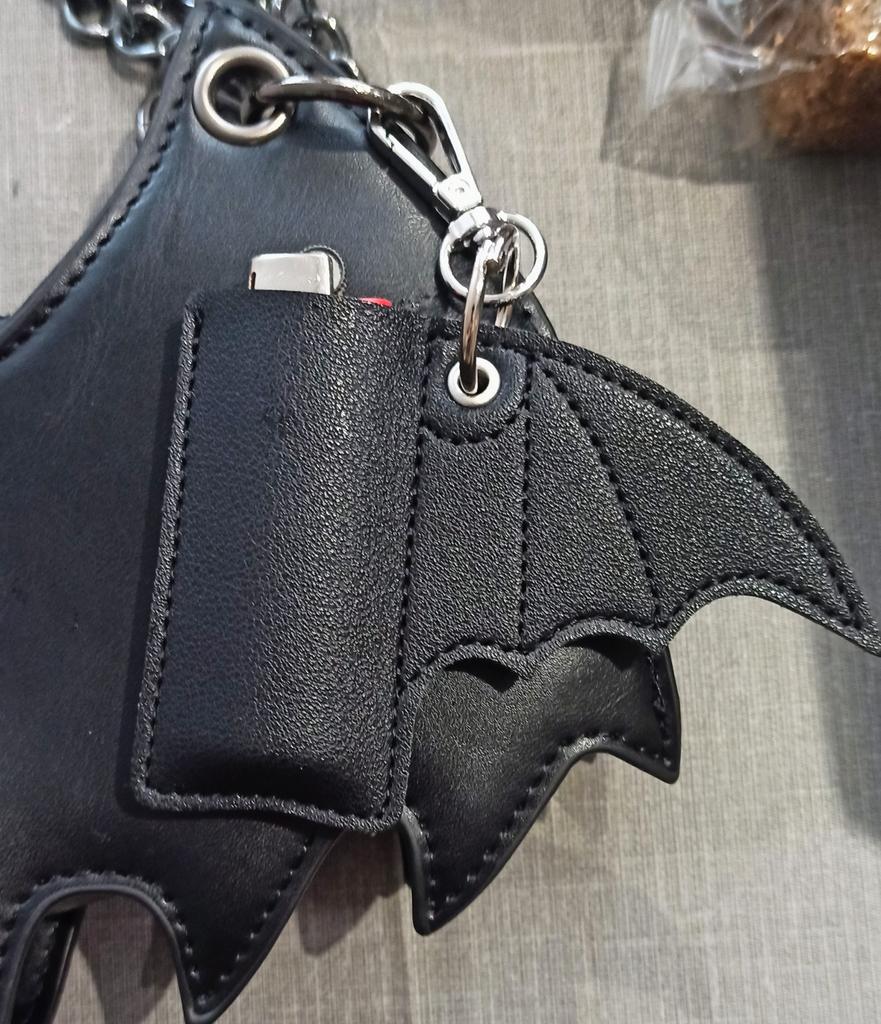 Bat Lip Balm Holder Lighter Case Keychain Pu Leather Wing Design Punk Style Pendant Accessories Lighter Protective Leather Case