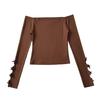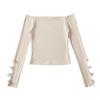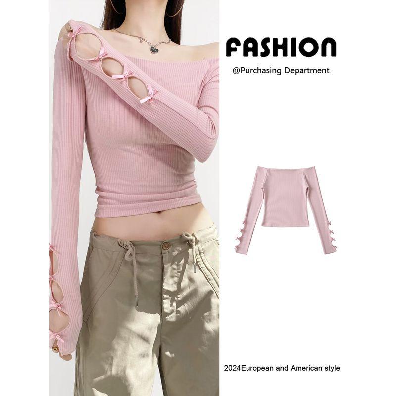 Za2024 Spring New Women's Clothing off-Shoulder Cut Out Design Silm off-Shoulder Long Sleeves Cuff Bow Top