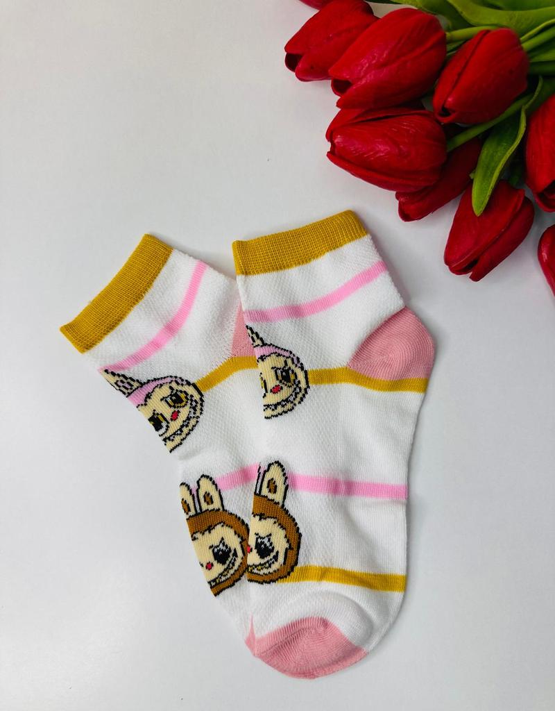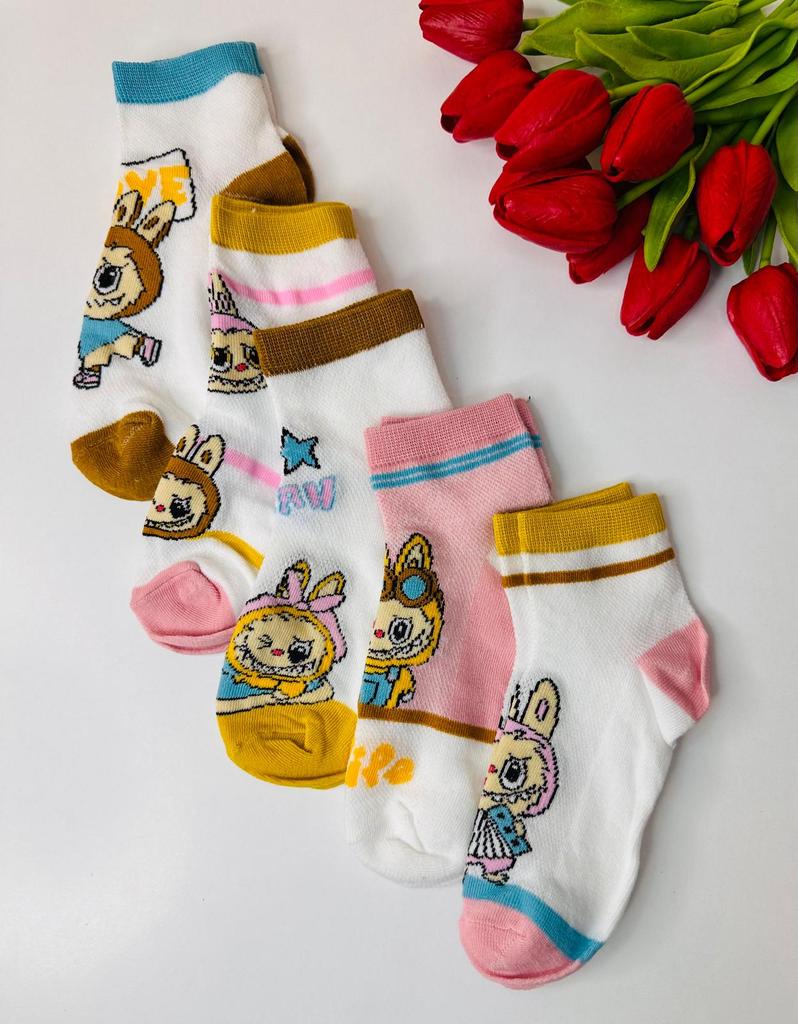 5Pcs Labubu Children's Socks, Girls' Cotton Socks, Thin and Cute Cartoon Breathable Socks for Spring and Summer
