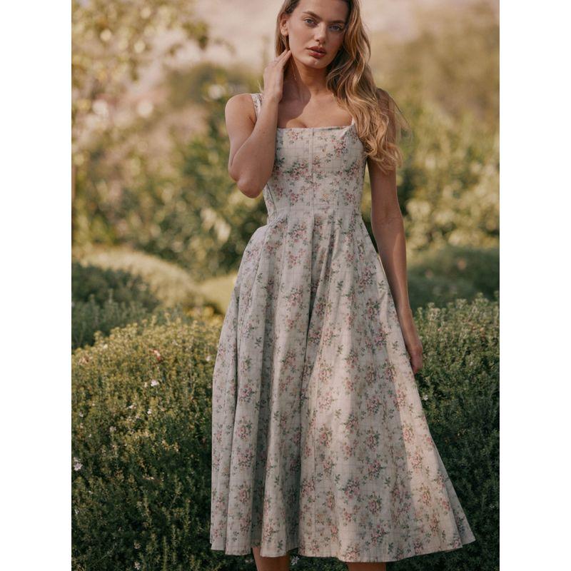 Huaxin House In Nanyu, Same Style with South French Holiday Style Sling Dress Waist Hugging Slimming Temperament Floral Long Dress