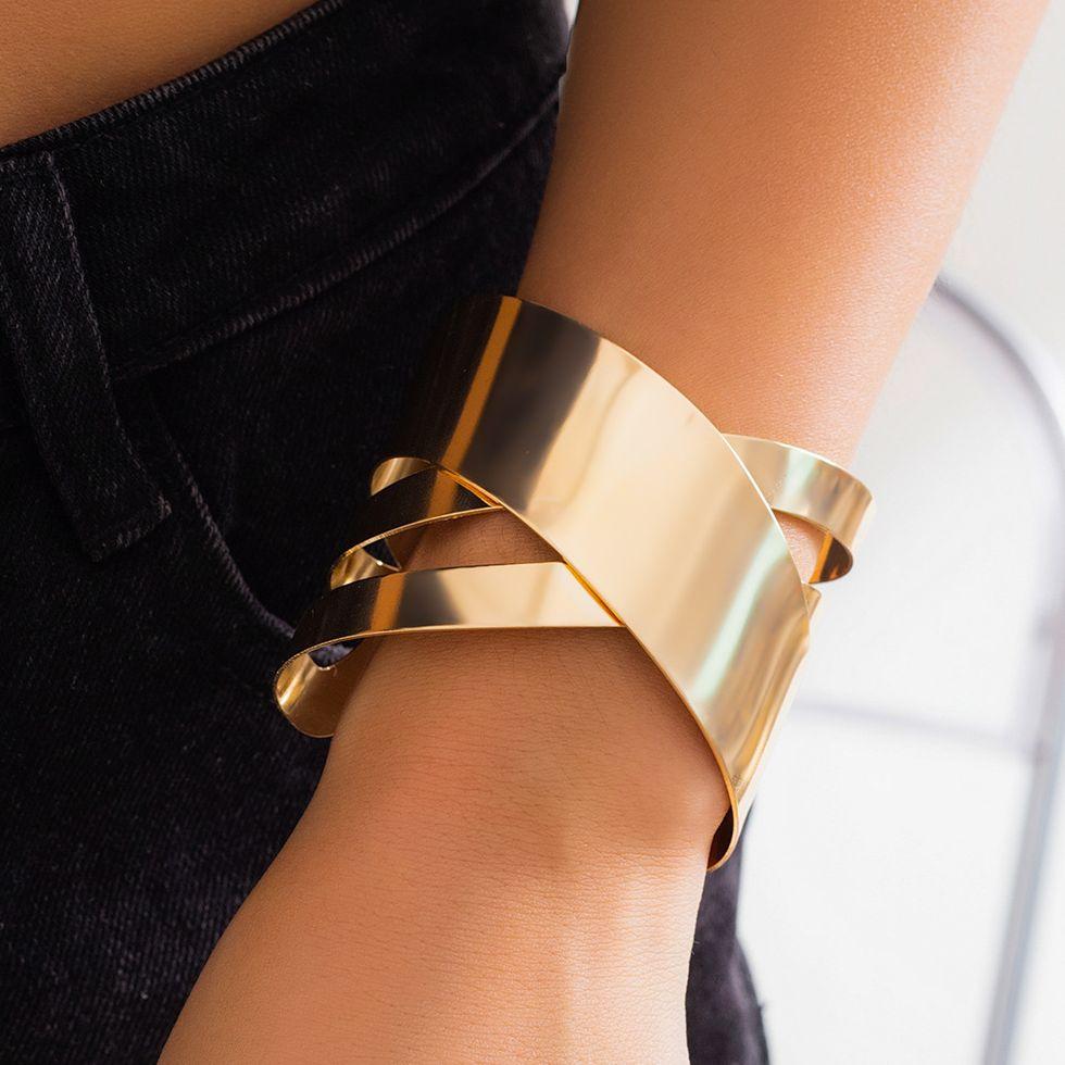 DIEZI Fashion Hip Hop Irregular Hollow Out Cuff Wide Bangles Vintage Gold Silver Color Metal Bracelets For Women Punk Jewelry